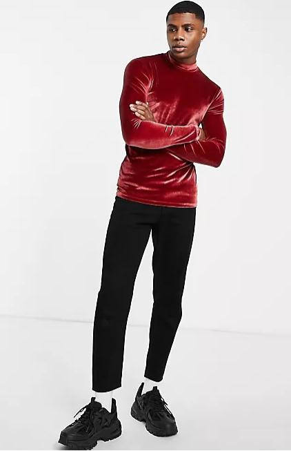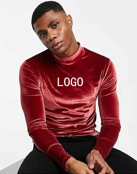 T-Shirt da uomo con logo personalizzato nuovo arrivo t-Shirt in velluto Muscle a maniche lunghe t-Shirt con collo alto