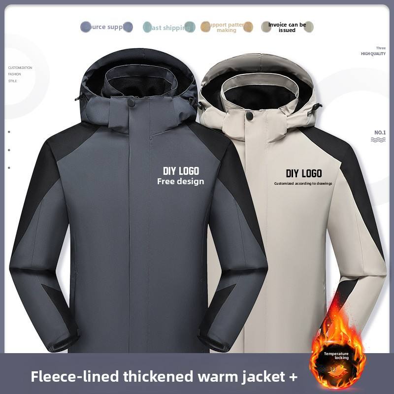 Logo personalizzato stampato fodera in lana spessa impermeabile giacca da uomo all'aperto antivento e calda giacca da lavoro Casual invernale