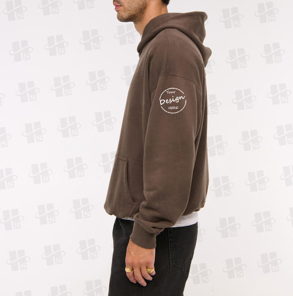 Felpa con Cappuccio Personalizzata in Cotone e Poliestere 450 GSM, Stampa all'Ingrosso, Felpa Marrone con Cappuccio per Uomo