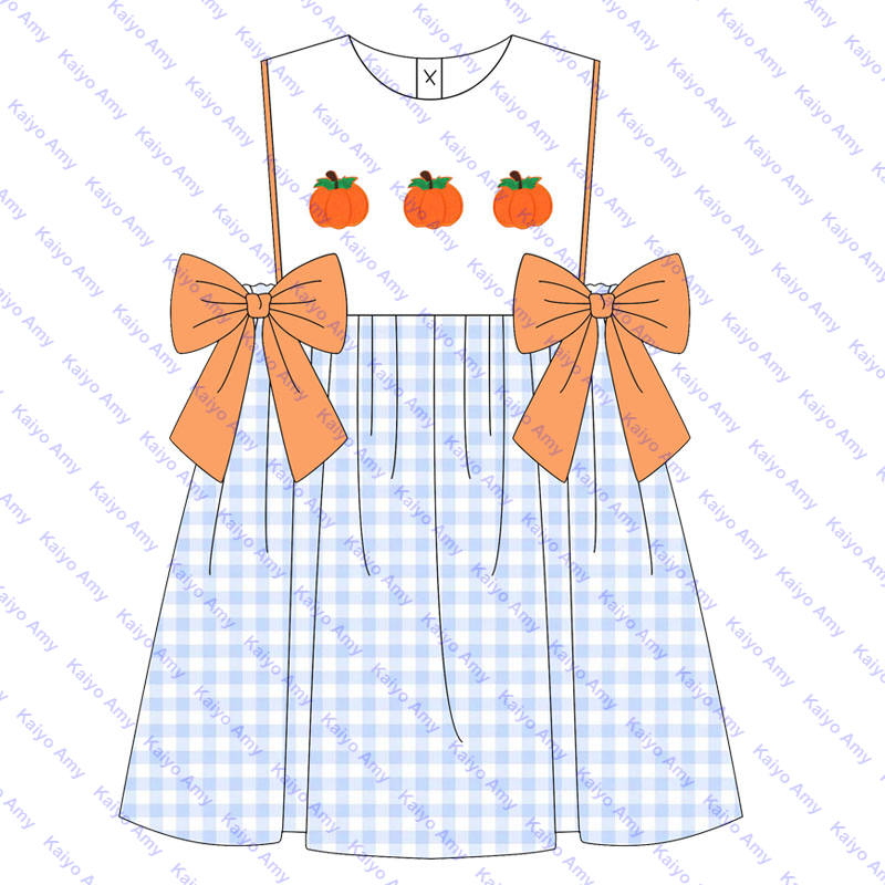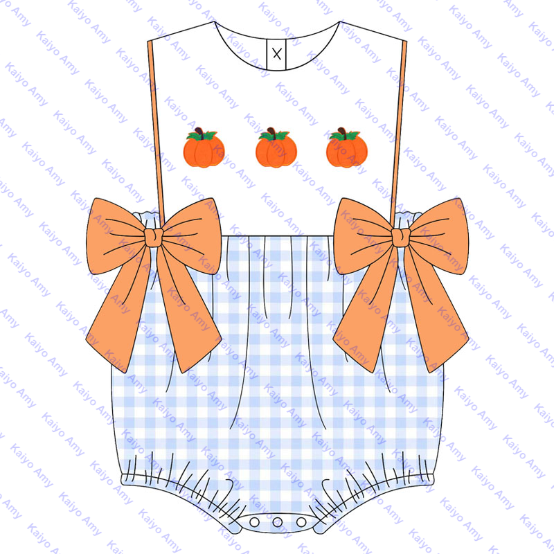 Logo personalizzato zucca intrecciata in cotone a quadretti per bambini abiti da bambina abbinati pagliaccetti a bolle per neonato