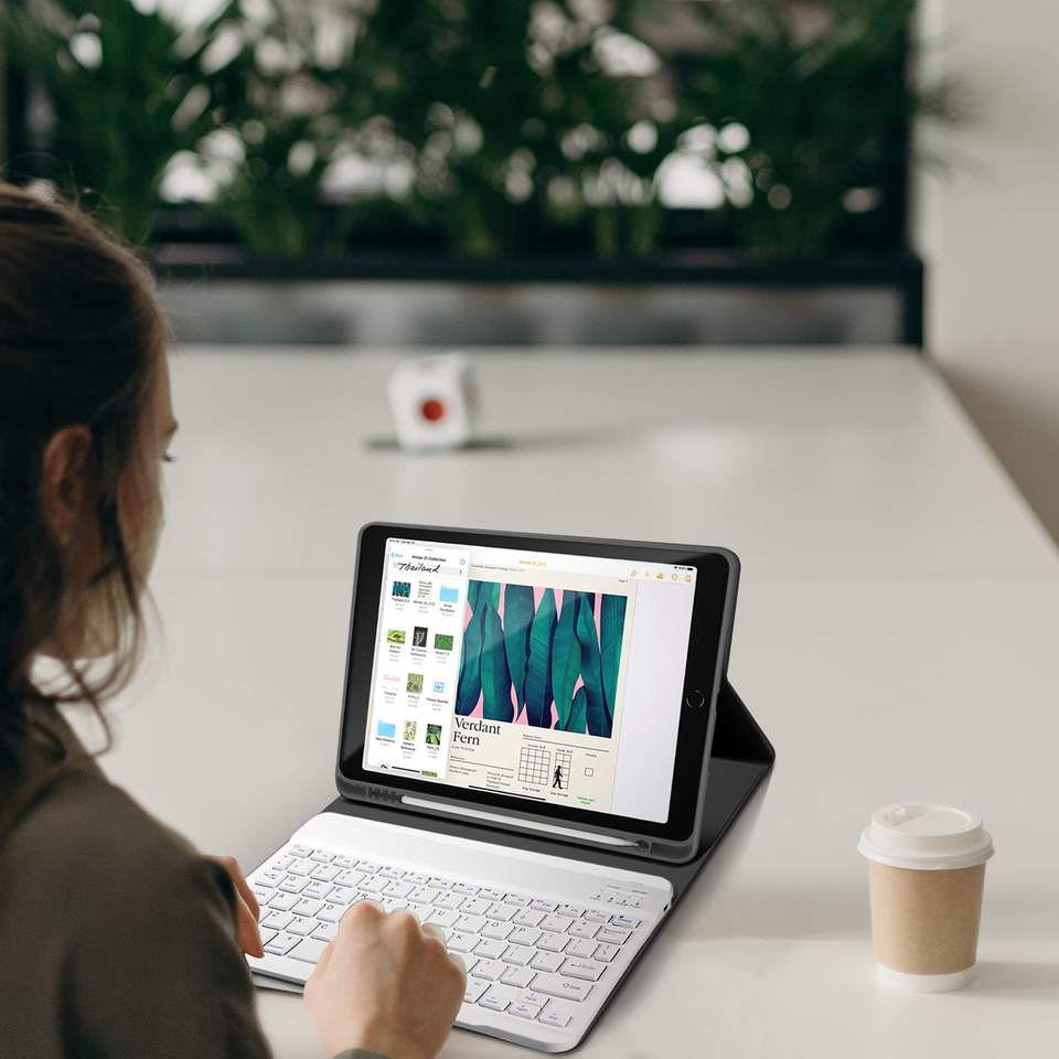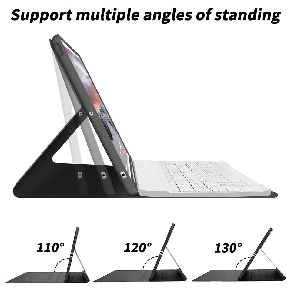 Logo personalizzato Rohs Fcc Ce tastiera bluetooth 10.9 ricaricabile con custodia in PU tastiera magica intelligente per ipad 10 ° bianco