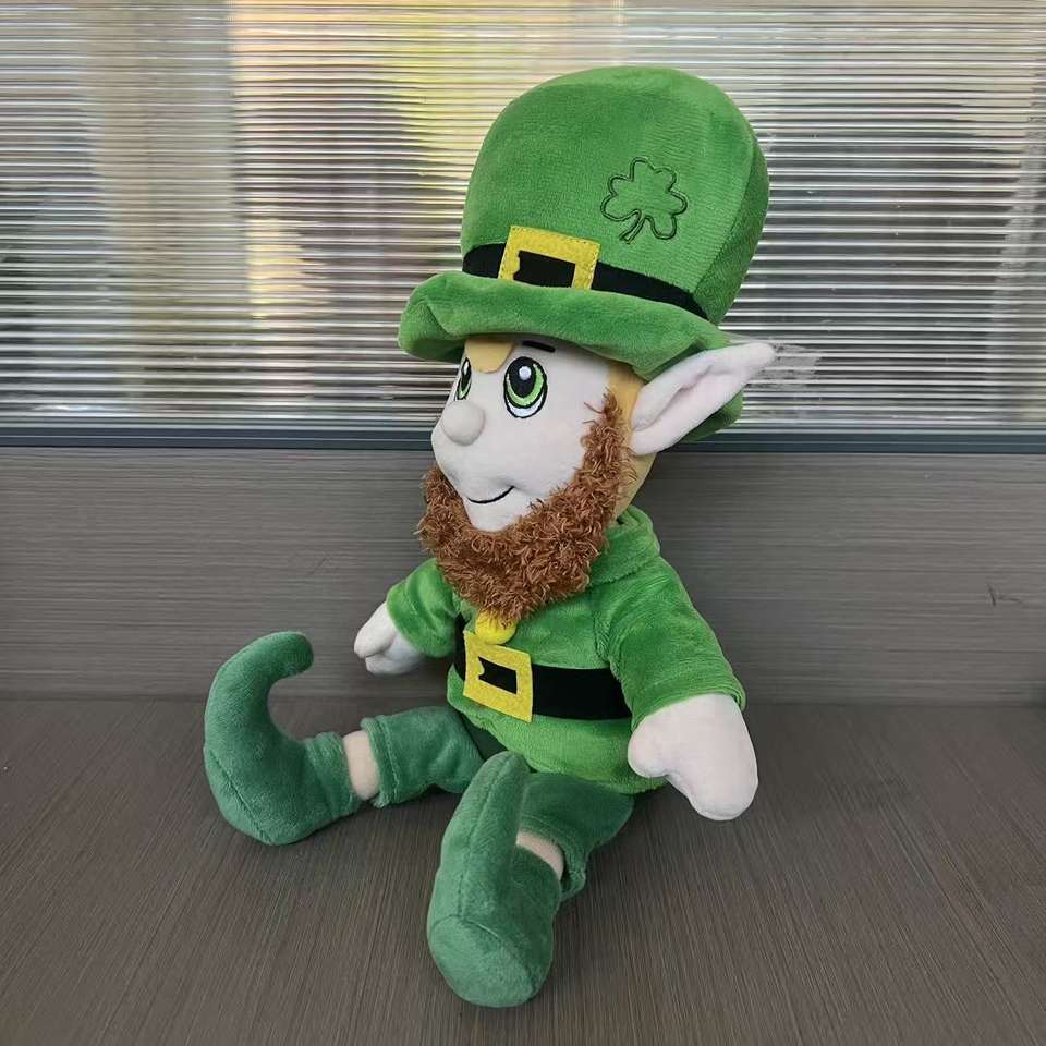 Custom logo St. Patrick's Day Stuffed Animal Dolls Green Hat Clothes Day Figurines Plush Toys Cartoon Anime Soft Pillow Gift