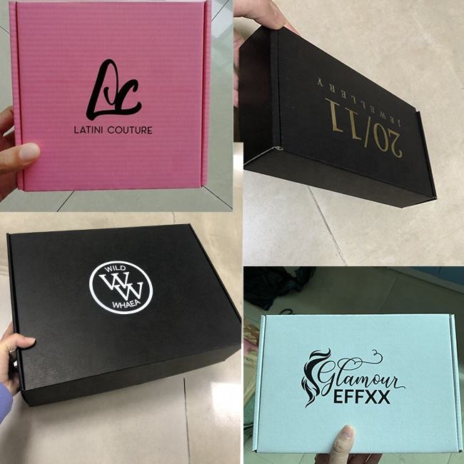 Parrucca con logo personalizzato vestiti ondulato spedizione postale imballaggio scatola postale postale Mailer marrone scatole di spedizione per gioielli di abbigliamento