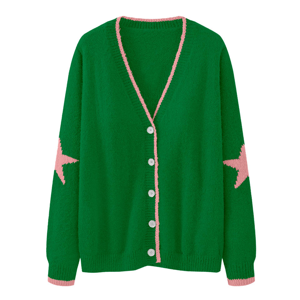 Custom logo Women Sweaters Sorority Green pink Women's V-neck Ladies Knitted Girl Long Sleeve Sweater Knit Cardigan
