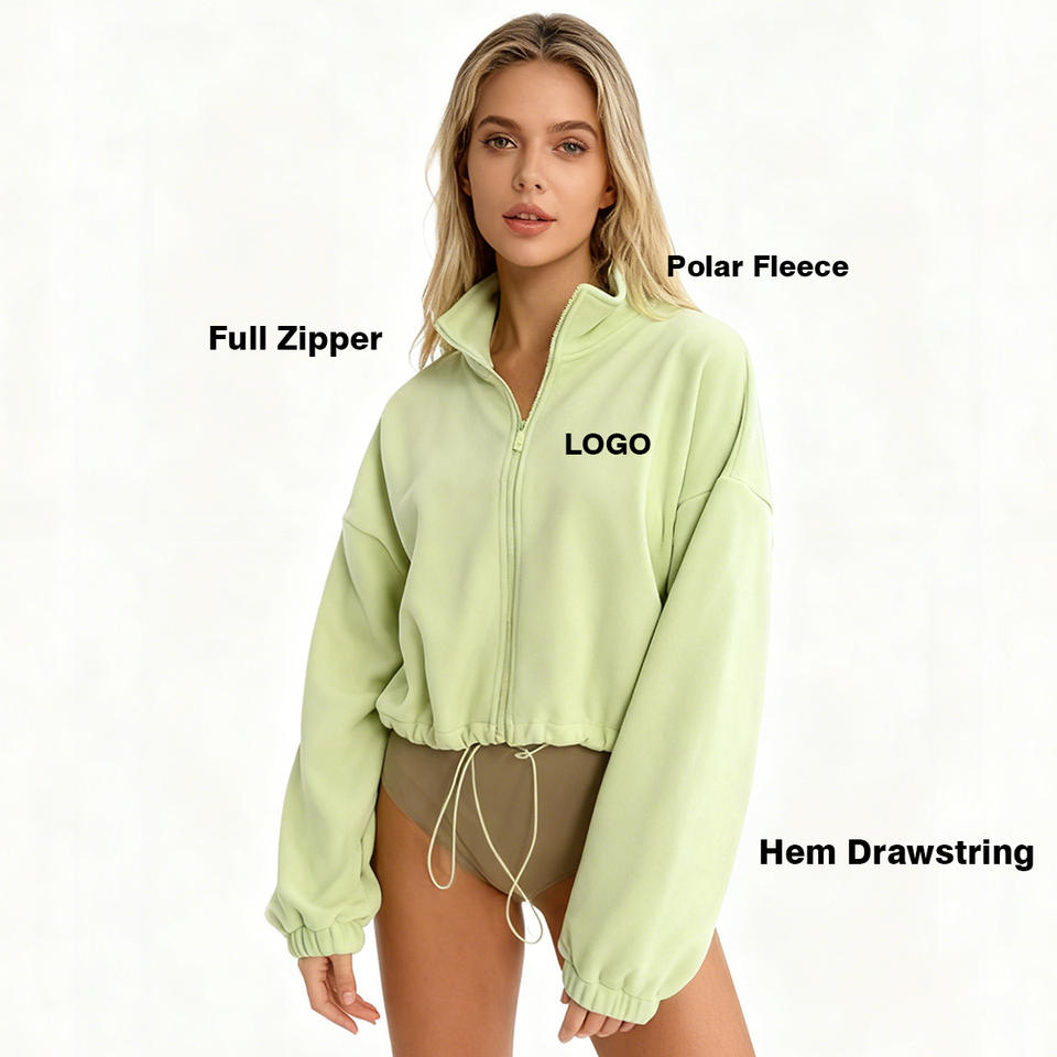 Giacca Oversize da Donna con Logo Personalizzato, Felpa con Zip in Pile Polare, Manica Corta a Sbuffo, Pullover in Sherpa, Cappotto in Pile per Donne