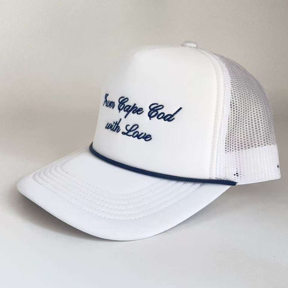 Logo personalizzato con amore scritto in schiuma di nozze cappellini Unisex 5 pannelli con cappello ricamato in corda blu scuro Design Club in rete cappellino da Baseball