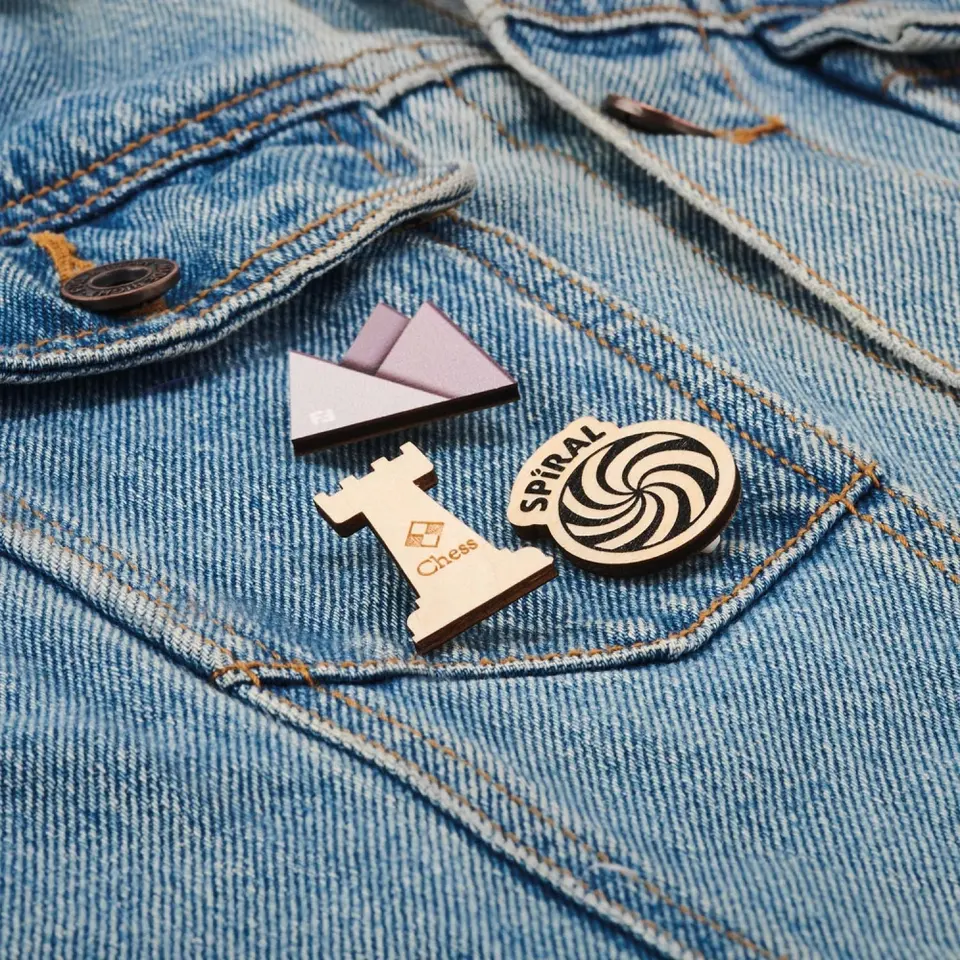 Custom wood brooch sustainable merchandising