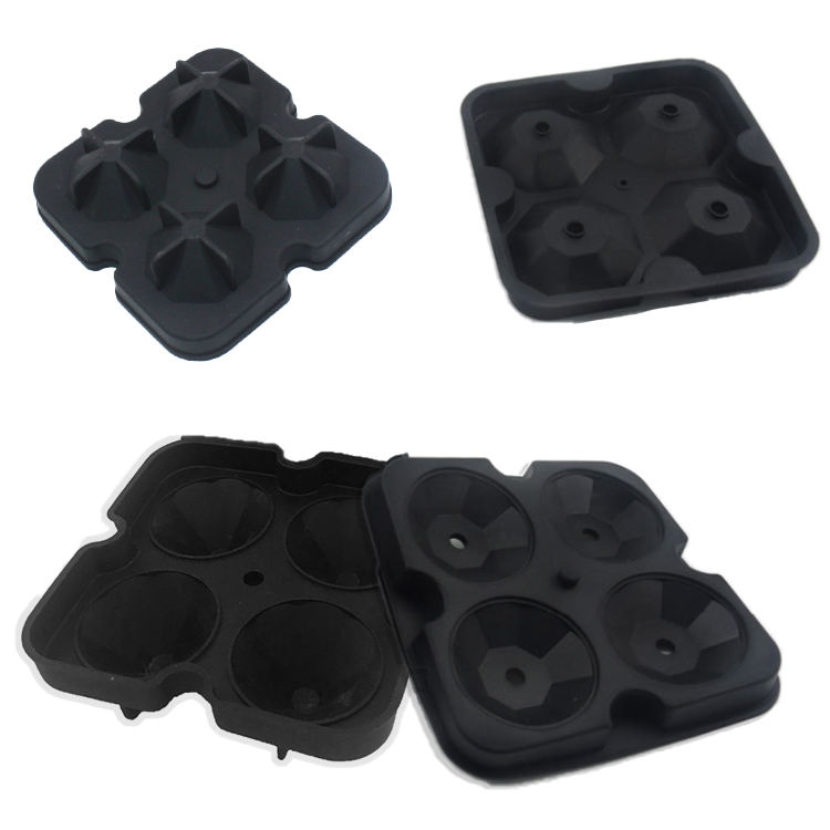 Stampi per ghiaccio in Silicone a 4 cavità a rilascio personalizzato 3D vassoio per cubetti di ghiaccio grande a forma di diamante/creatore con coperchio/coperchio per birra whisky da festa