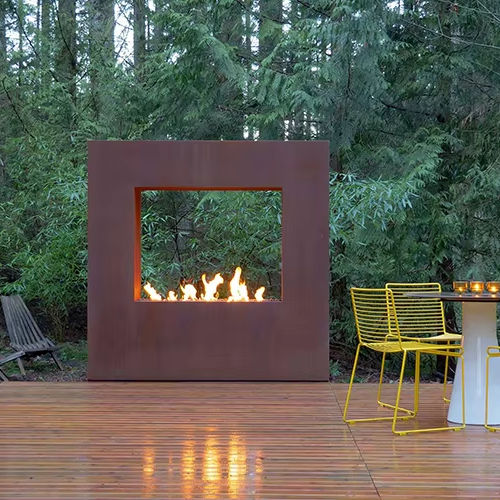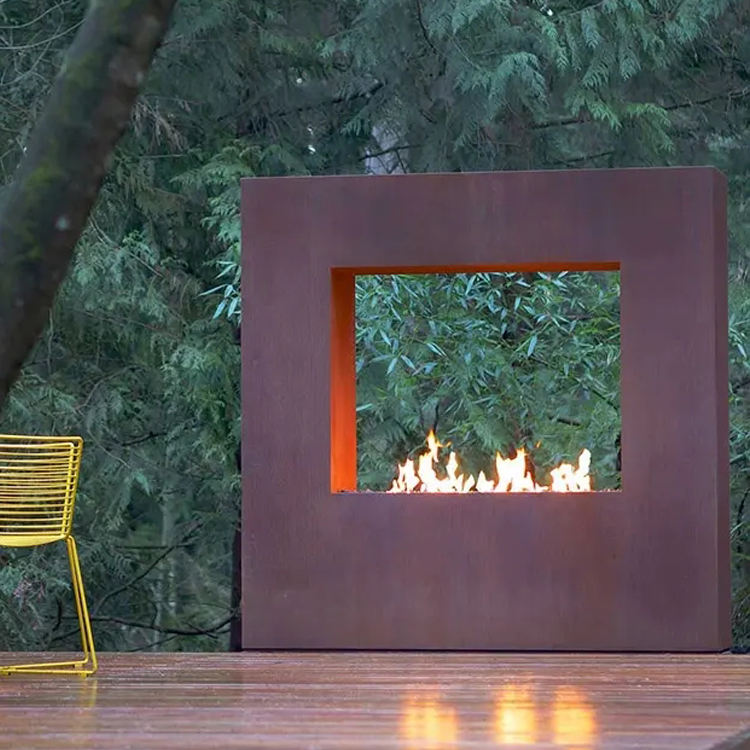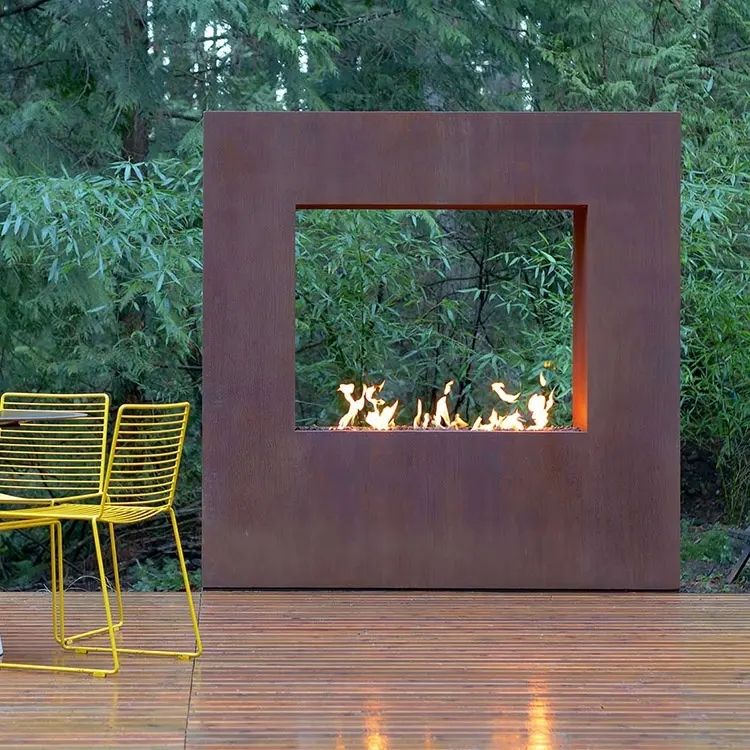 Customised Custom Sized Factory Price Attractive Outdoor Smokeless Corten Steel Gas Square Gas Fireplace