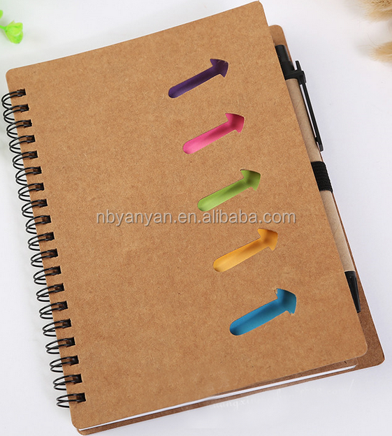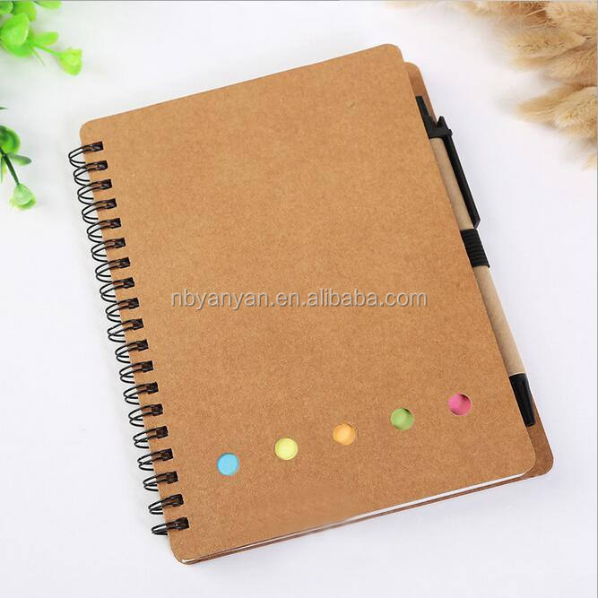 Logo personalizzato Kraft copertina in bianco bianco interno foderato di carta a spirale notebook con penna colorful sticky notes divisore