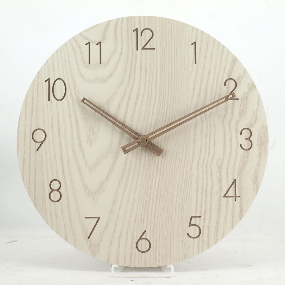 Personalizzabile 12 Pollici di Legno Orologio da Parete Tondo Taglio Laser Inciso Numeri Moderno Stile Semplice con Le Mani in Legno