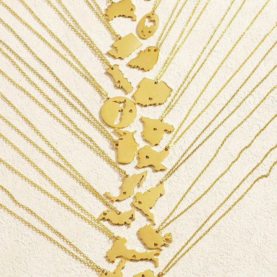 Customizable 18k Gold Plated Jewelry Blank Africa Country Map Necklace Stainless Steel CityStructure Topographic Pendant