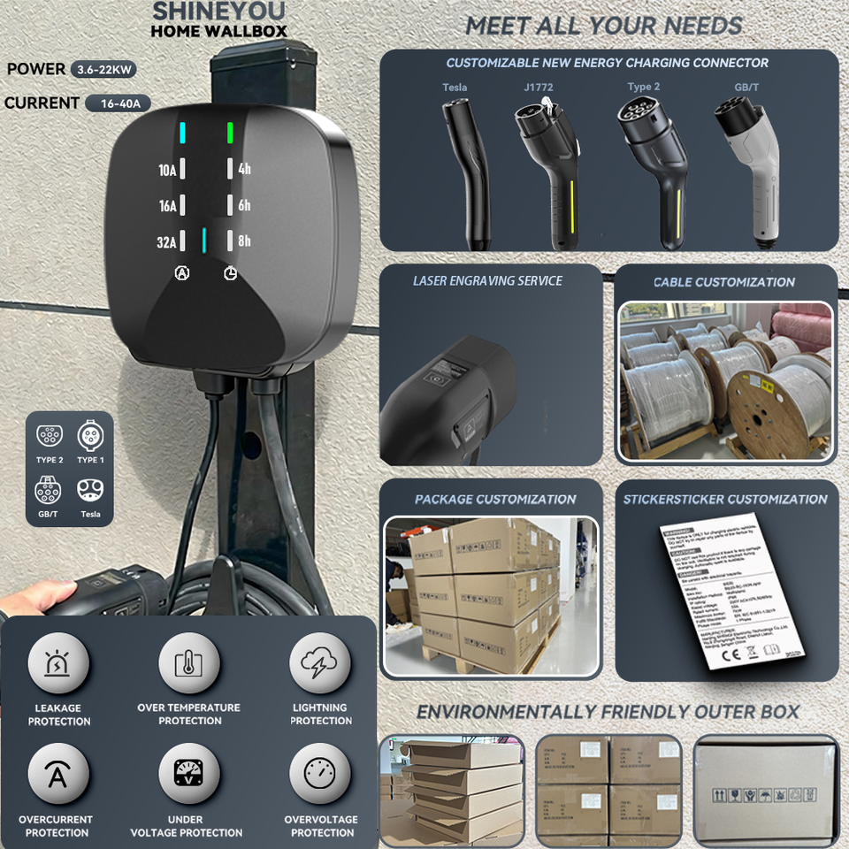 Stazione di Ricarica Wallbox Personalizzabile 3.5KW/7KW/9.6KW/11kw/22kW Completamente Montata per Tesla J1772 Tipo2 Gb T Ip67 con Telecomando