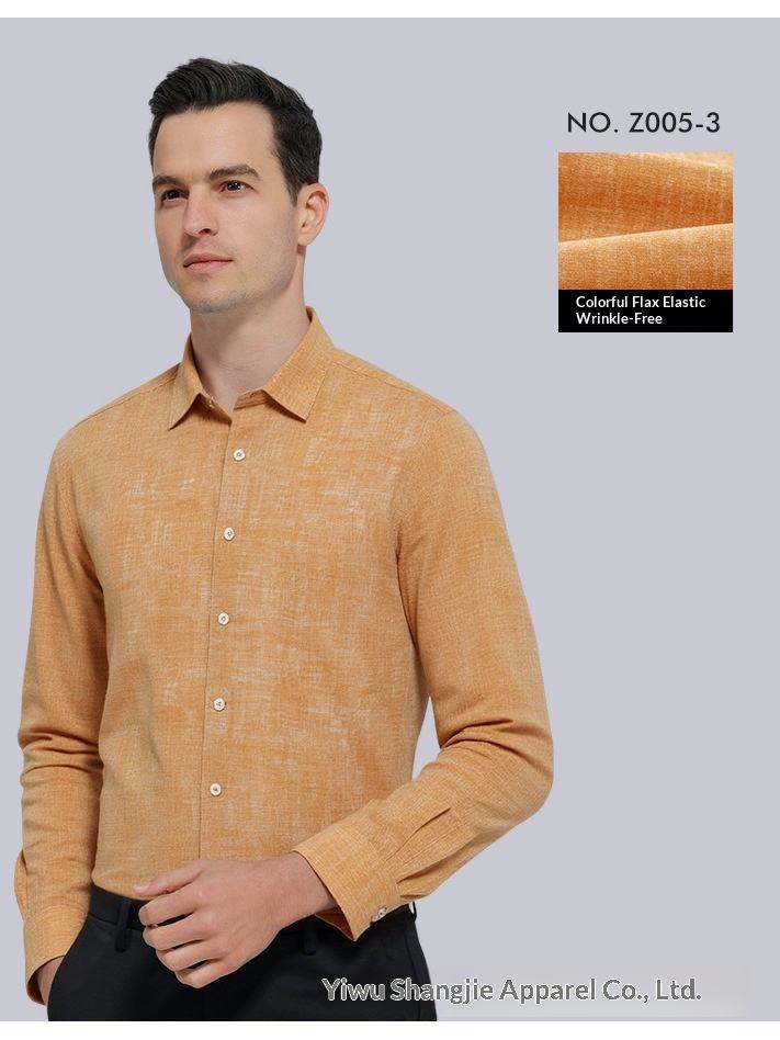 Camicia Casual da Uomo Personalizzabile in Cotone Pima con Texture Lino Arancione, Antipiega, Stile Anni '60