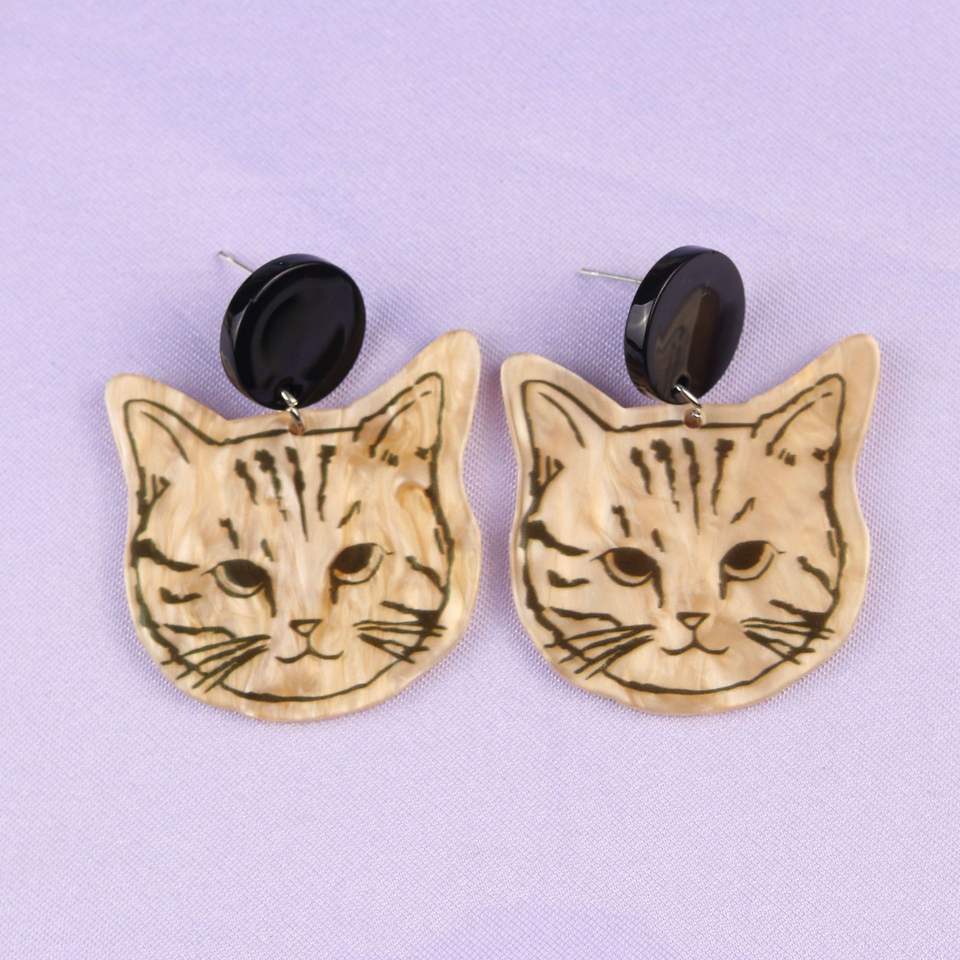 Orecchini a Perno Personalizzabili con Gatto Cartoon, Motivo Animale in Acrilico, Stile Trendy per Ragazze, Studentesse, Festival, Piccolo Regalo di Gioielleria