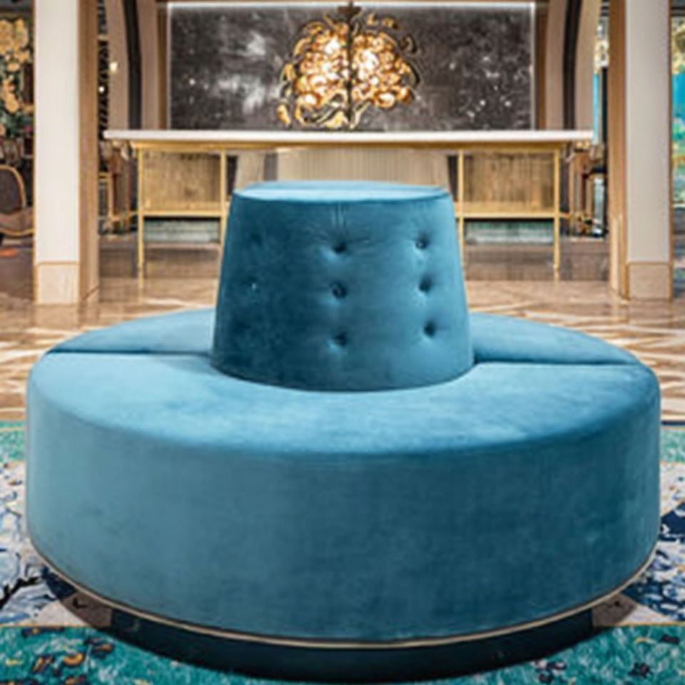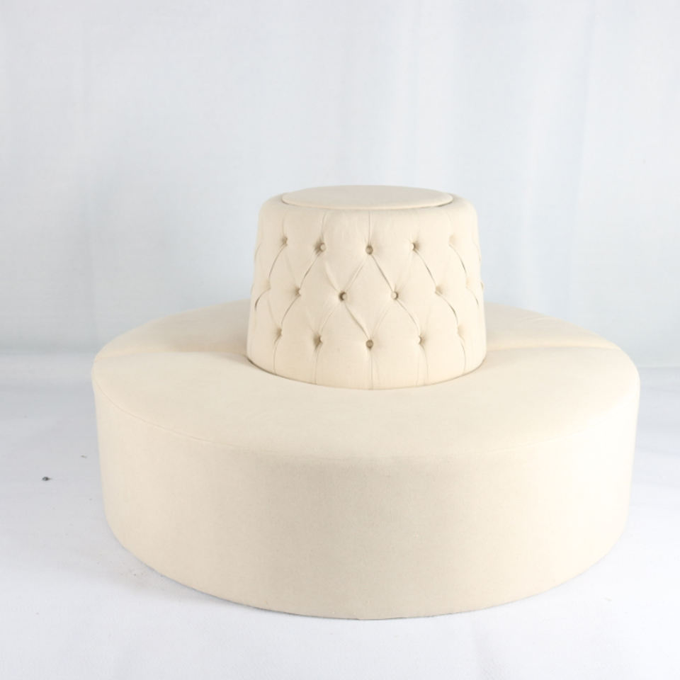 Divano componibile rotondo capitoné OSF-1150A, legno massello e tessuto lino, personalizzabile, per hotel/reception/esterno
