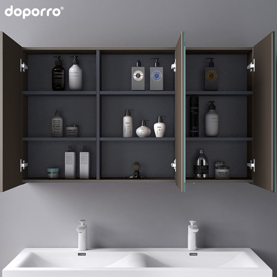 Design personalizzabile a buon mercato vanità bagno appeso a parete mobili da bagno armadi a specchio moderno stoccaggio Hotel finitura melaminica