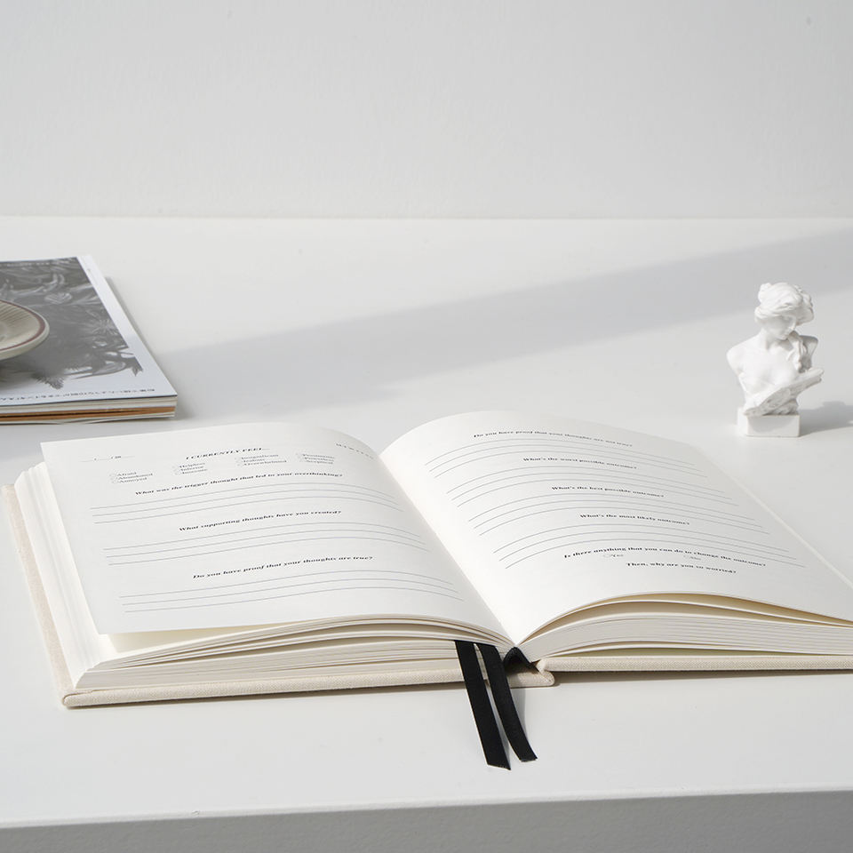 Rivestimento in tessuto di lino personalizzabile con copertina rigida A5 quotidiano di auto-riflessione e crescita