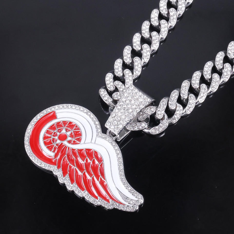 Customizable Detroit Red Wings Logo Pendant Geometric Cuban Chain Necklace with Full Rhinestone Gift for Men Women Friends