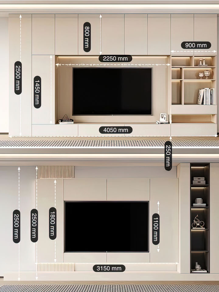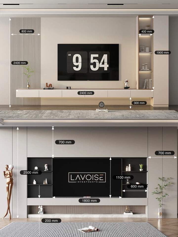 Mobile TV a Parete Integrato Modulare con Dimensioni Personalizzabili - Arredamento da Soggiorno in Legno Ecologico e Resistente