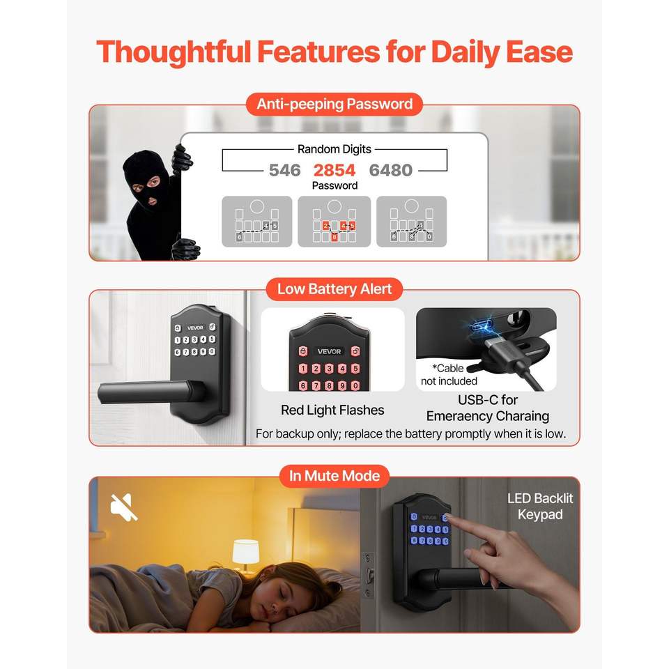 Maniglia per Serratura Elettronica Personalizzabile con Tastierino, Chiusura Automatica, Codici Utente Personalizzabili