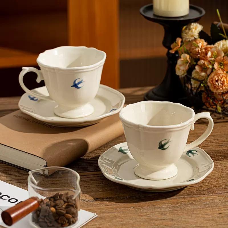 Piattino da tè e tazza di caffè personalizzabile europeo Fine Bone China Set piattino da tè mattina e pomeriggio
