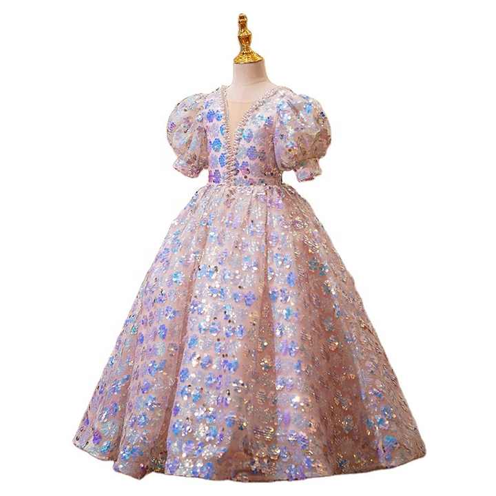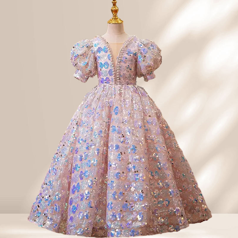 Abiti da Cerimonia per Bambine Personalizzabili con Paillettes e Perline, Vestiti da Sera per Bambini