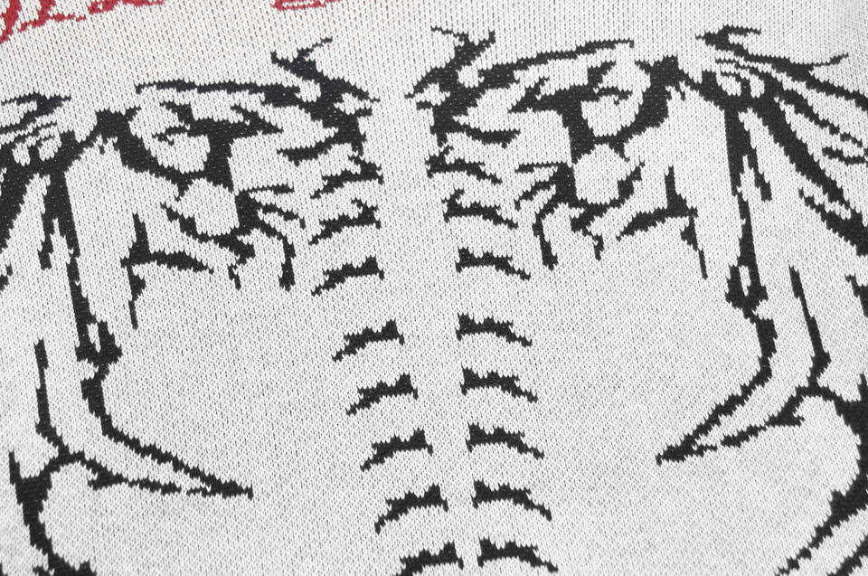 Pullover da uomo in lana anteriore personalizzabile Color grigio invernale ODM fornitura Horror a tema 3D drago in osso con ala ricamata a tracolla