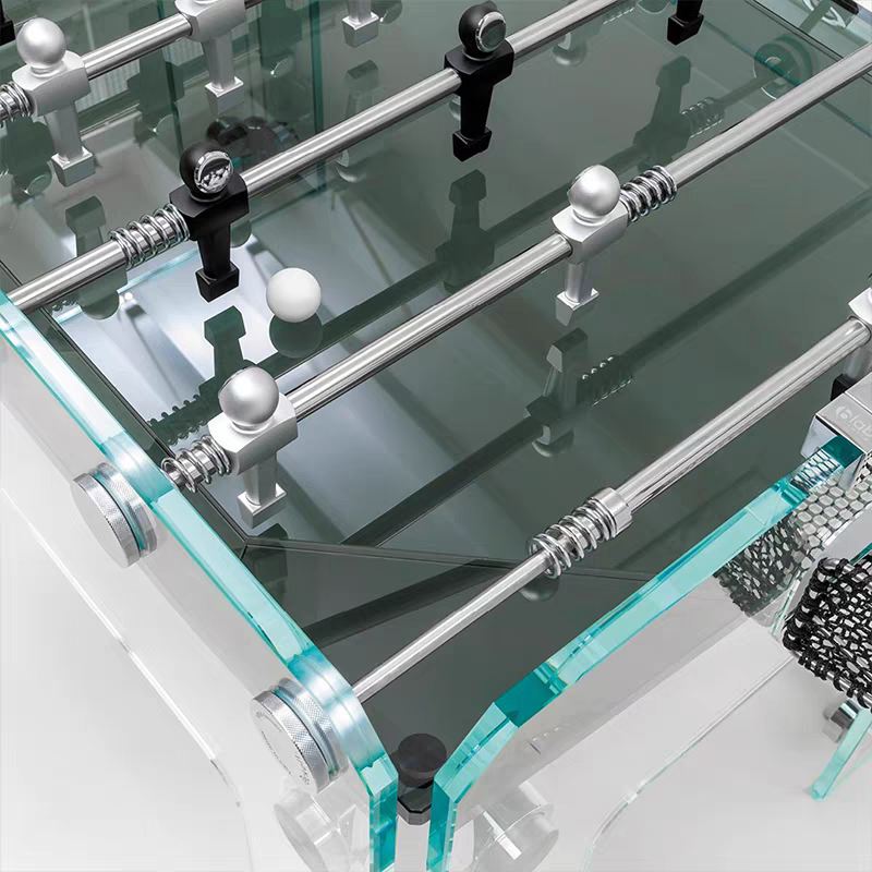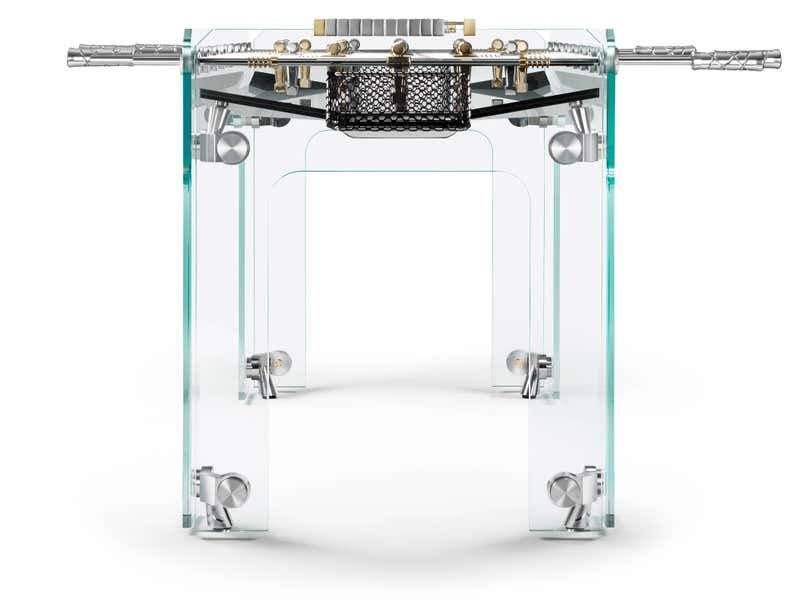 Tavolo da Calcio Balilla in Vetro Completamente Trasparente Personalizzabile con Parti Dorate per Intrattenimento Calcistico Interno ed Esterno