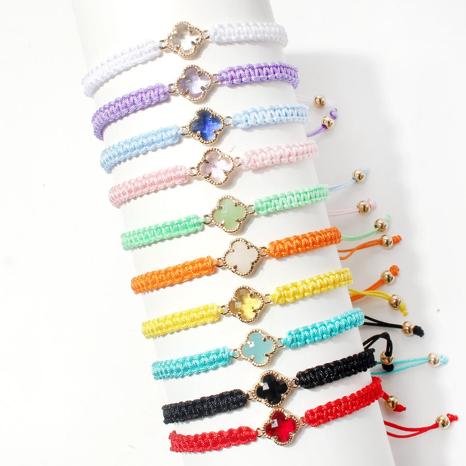 Braccialetto Portafortuna Personalizzabile con Quadrifoglio, Gioiello da Donna in Corda Macramè, Idea Regalo