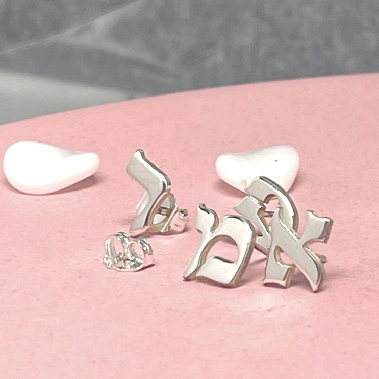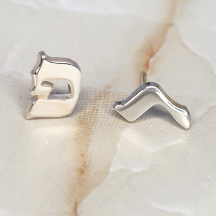 Orecchini a bottone personalizzabili con lettere di ebraico ad alta lucidata argento, oro giallo, gioielli gioielli impermeabili impermeabili ipoallergenici in oro rosa