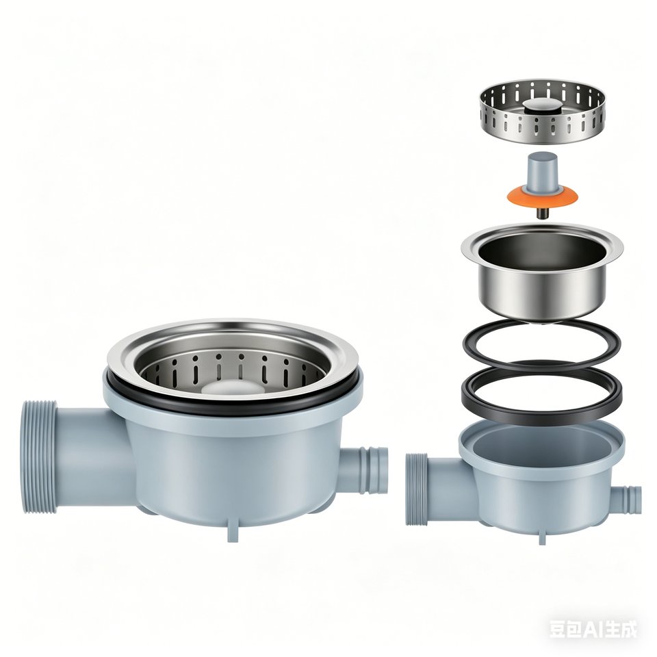 Scarico per Lavello Orizzontale a Doppio Strato Personalizzabile, Scarico da Cucina in Plastica-Acciaio con Troppopieno, Supporto OEM