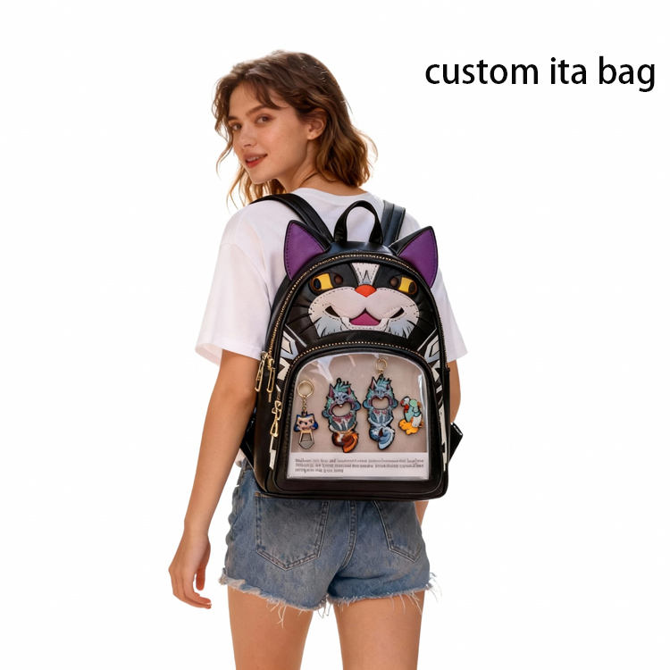 Zaino Ita Bag Personalizzabile con Faccia di Gatto Kawaii, Mini Zaino Carino con Finestra Trasparente per Collezionisti di Pin Anime e Amanti dei Gatti
