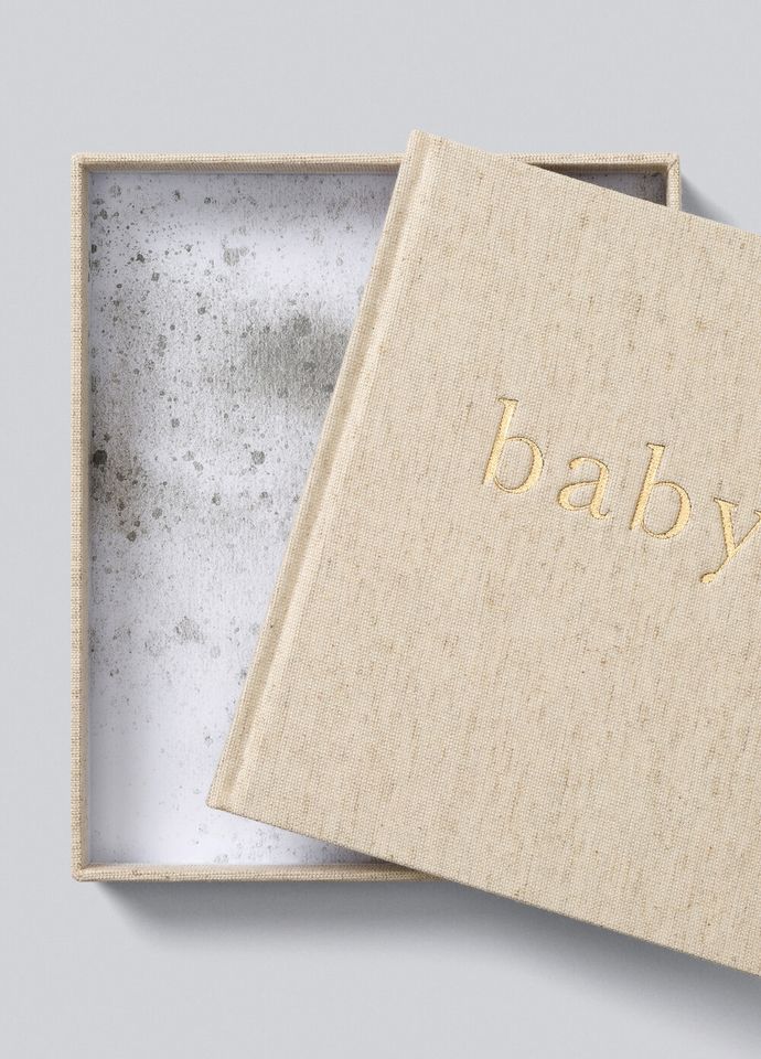 Customizable Luxurious Baby Journal Linen Baby Pregnancy Keepsake Memory Book with Gold Embossed logo and Linen Hardcover Box