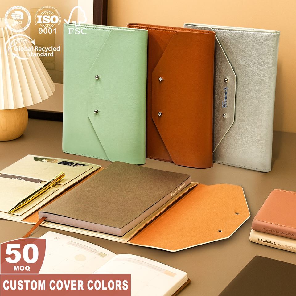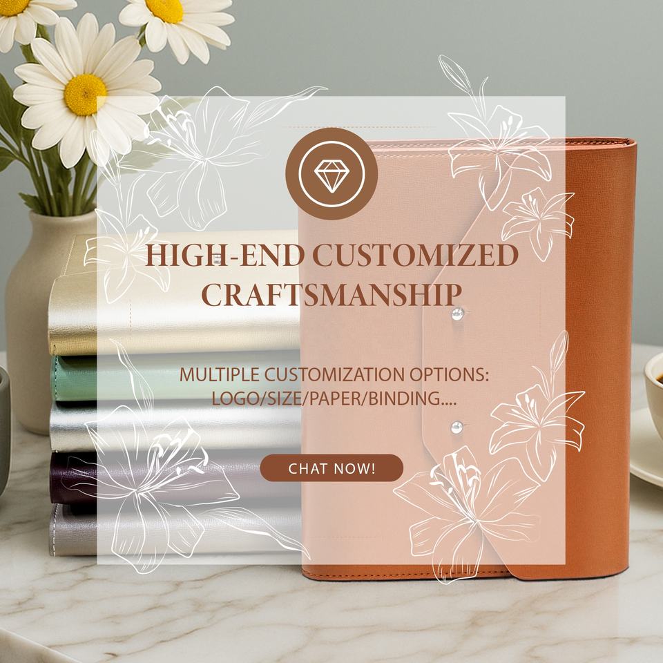 Opzioni personalizzate:Logo / Colore / Incisione del Bottone in Metallo / Pagine Interne / Scatola Regalo