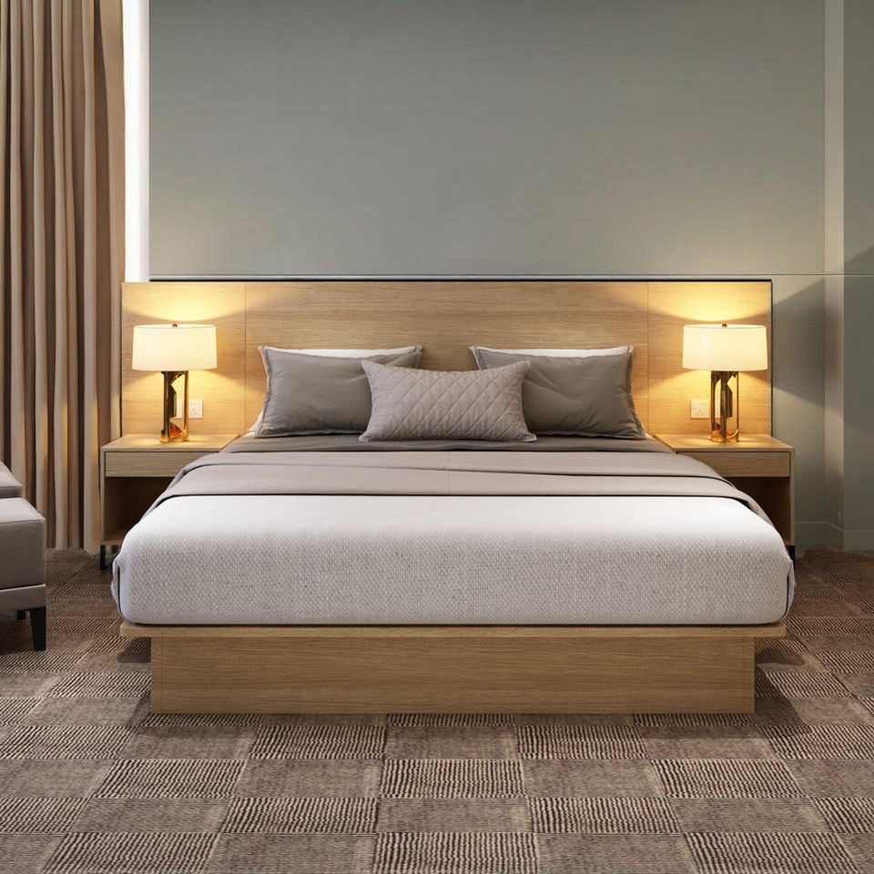 Letto Moderno King-Size Personalizzabile in Legno con Contenitore, Mobili per Camera da Letto per Hotel e Ville, Realizzato in Truciolato