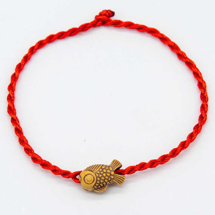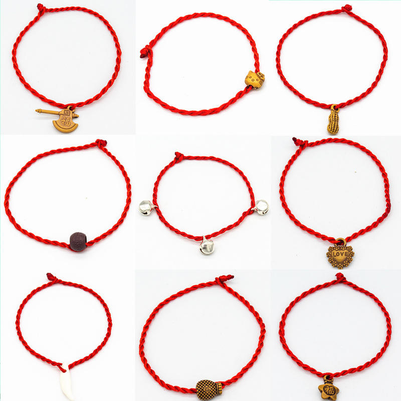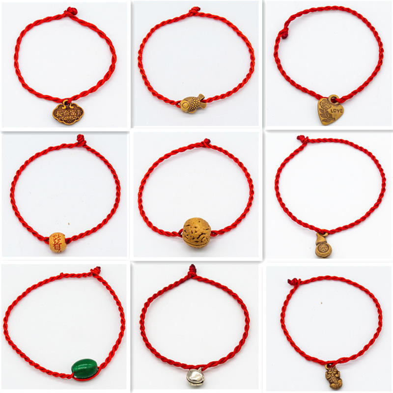 Negozio Online personalizzabile piccoli regali all'ingrosso intrecciati a mano corda rossa imitazione legno pesca imitazione giada piccola corda rossa bracciale