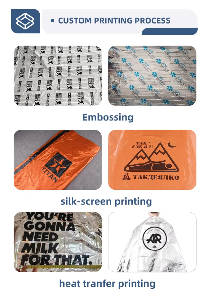 Supporta la Personalizzazione di Coperte di Emergenza per Esterni, Coperte Termiche di Sopravvivenza Leggere e Sottili.