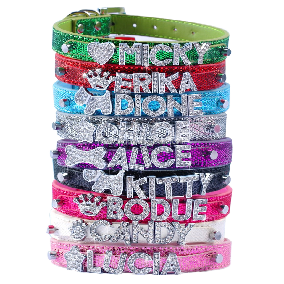 Customizable PU Dog Collar Simple Style Leather Personalised Cuello Slide Letter Cuello with DIY Name for Cats Application