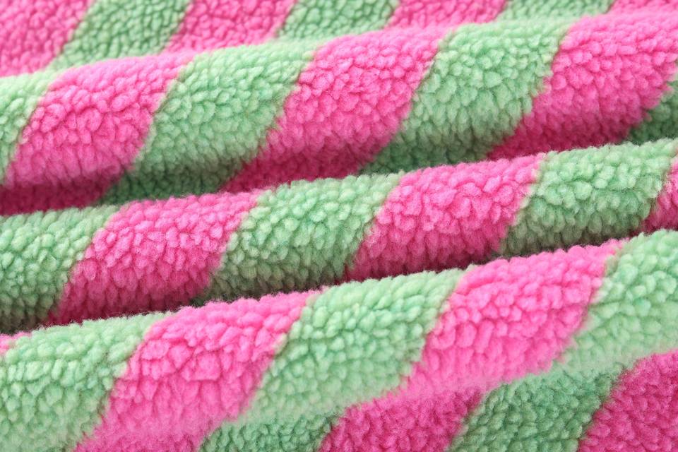 Tessuto in Finta Lana d'Agnello Riciclato 100% Poliestere Personalizzabile, Jacquard a Strisce 40mm per Abbigliamento Femminile