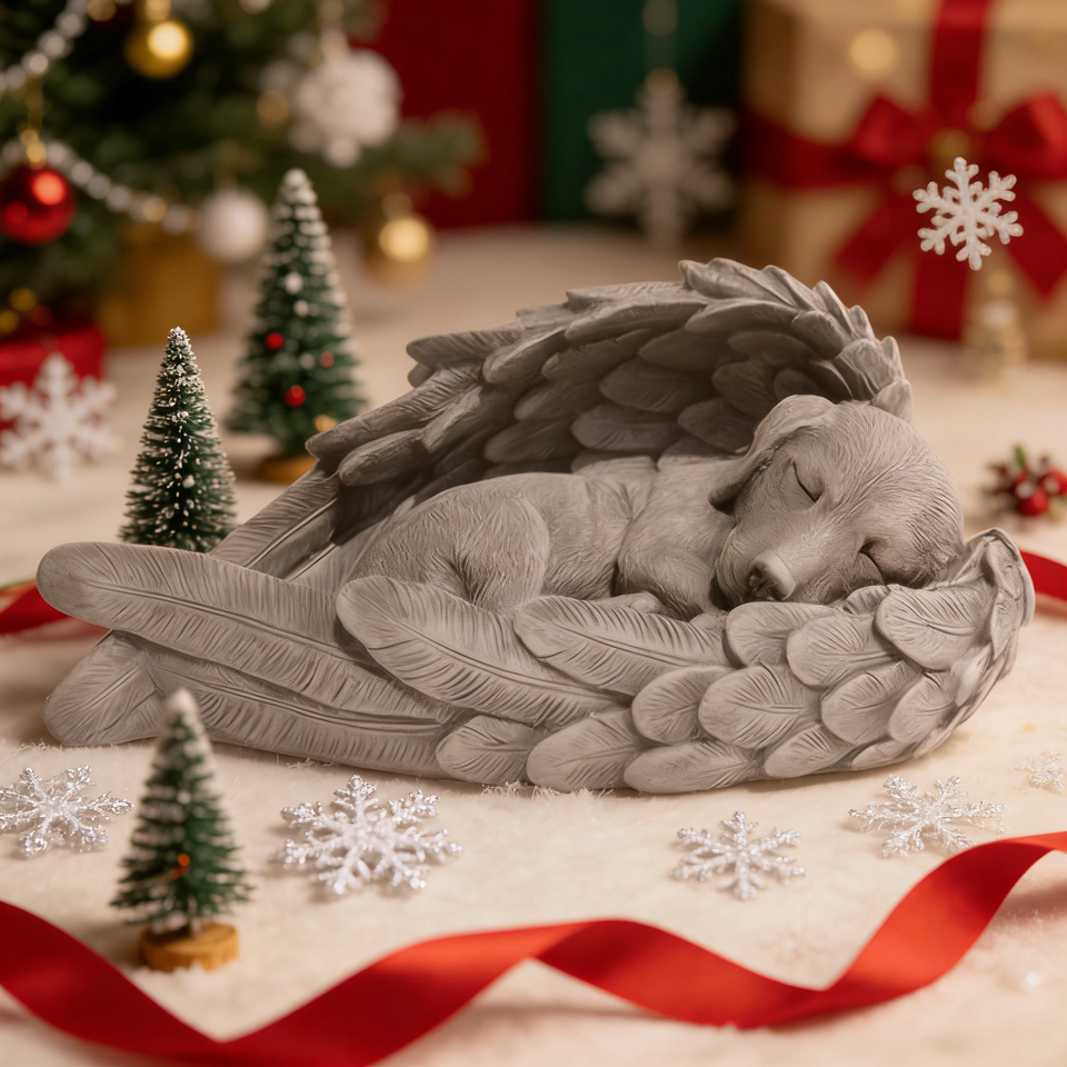 Customizable Resin Angel Dog Memorial Statue (USA In-Stock) - Winged Nest Design, Engravable Option, Ideal for Home Shelf Decor