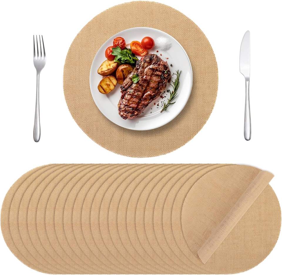 Tovagliette Rotonde in Juta Intrecciata Personalizzabili Fatte a Mano per Tavola da Pranzo, Tovagliette Ecologiche all'Ingrosso per Matrimoni