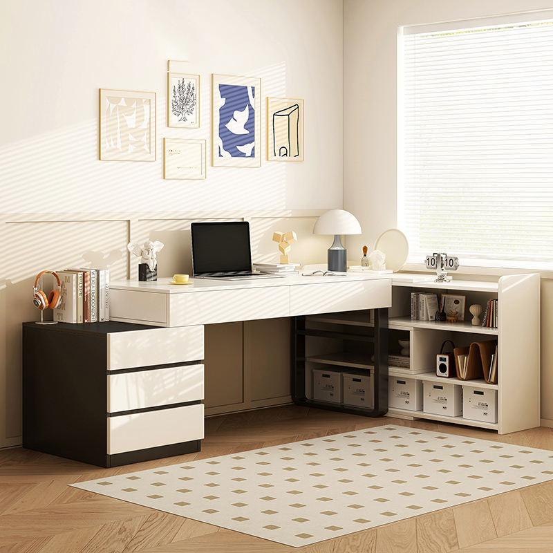 Scrivania a L con Cassettiera di Dimensioni Personalizzabili per Appartamenti Piccoli, Tavolo da Studio con Sedia per Camera da Letto e Soggiorno per Ragazze