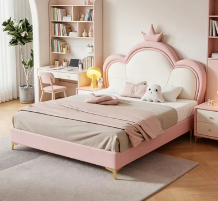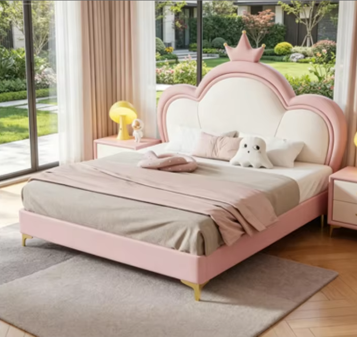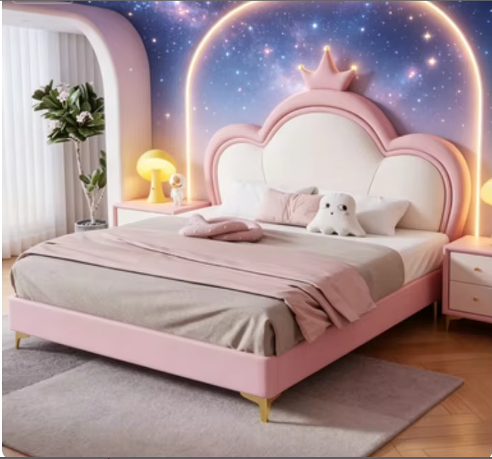 Letto singolo per ragazze in pino con dimensioni personalizzabili (1.2m-1.8m), design a zampa di gatto in pelle siliconica, modello Cloud Princess