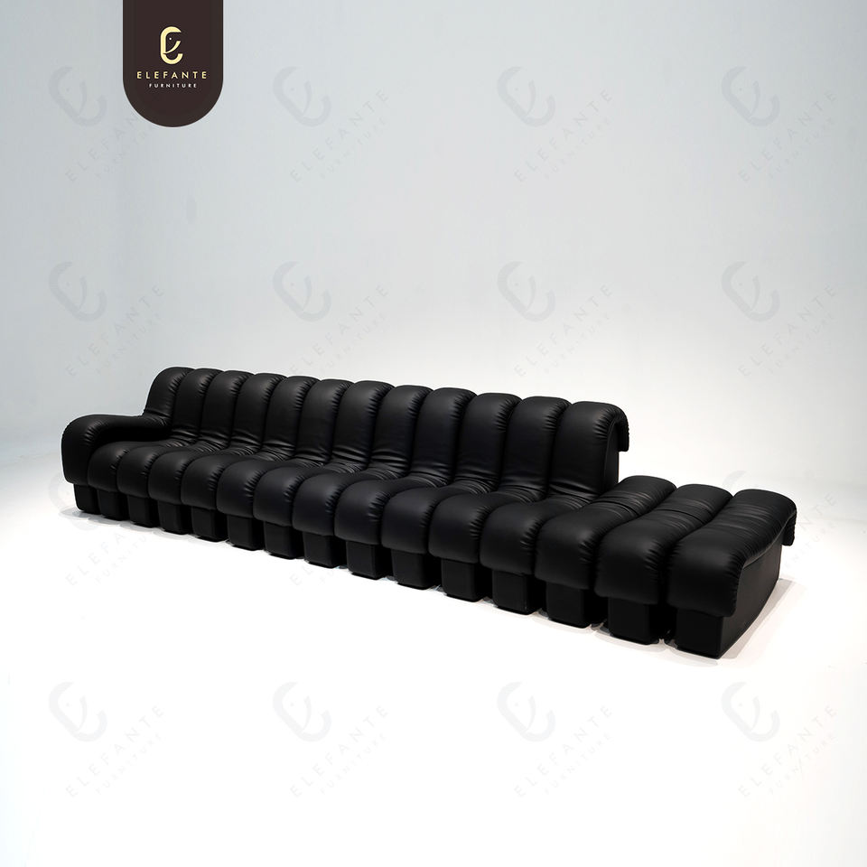 Divano Modulare Personalizzabile in Vera Pelle Nera, Design Moderno e Continuo, Combinazione a Forma di Serpente, per Arredamento Villa