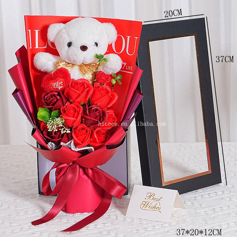 Nome del prodotto:Scatola regalo orsacchiotto con nastro sapone rosa Bouquet