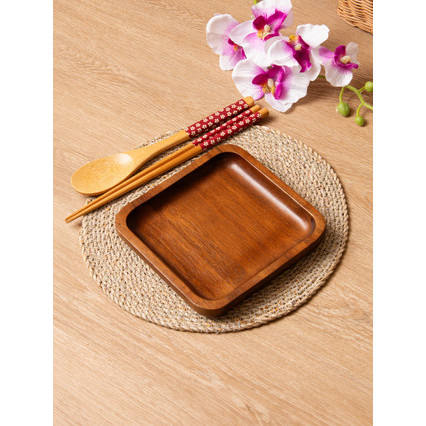 Piatto quadrato personalizzabile in legno di Acacia 14.5 cm solido piatti da cena fatti a mano Design moderno frutta lucidata servizio per alberghi