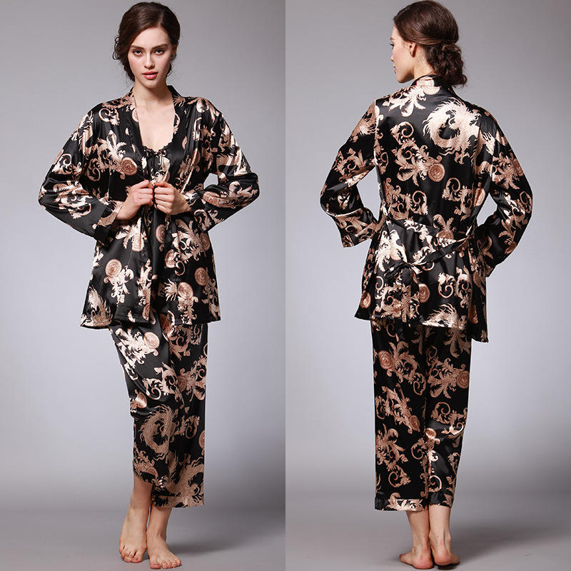 Pigiama coppia in tre pezzi personalizzabile estivo a maniche lunghe camicia da notte da donna accappatoio da notte da uomo abbigliamento per la casa