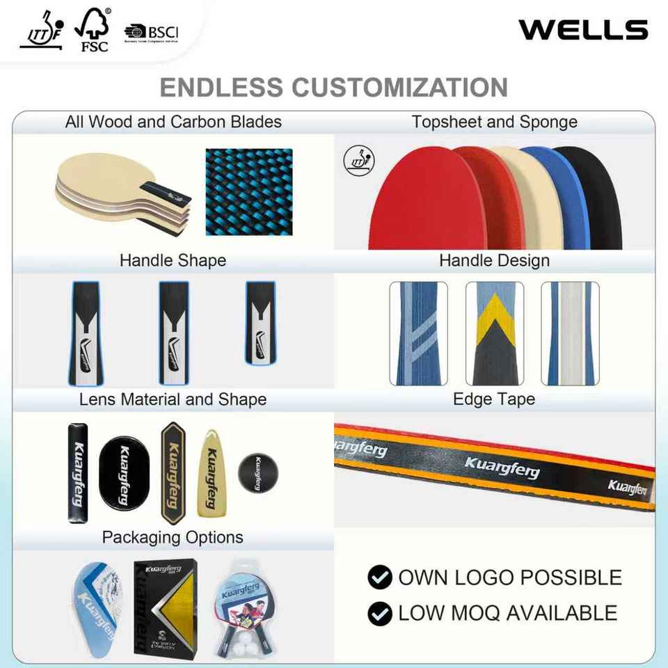 Set di allenamento personalizzabile per ping pong con gomma di alta qualità e spugna con custodia rigida per l'allenamento di ping pong