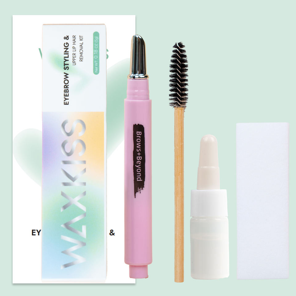 Un kit include2::Pennello per sopracciglia per la cura della postcera